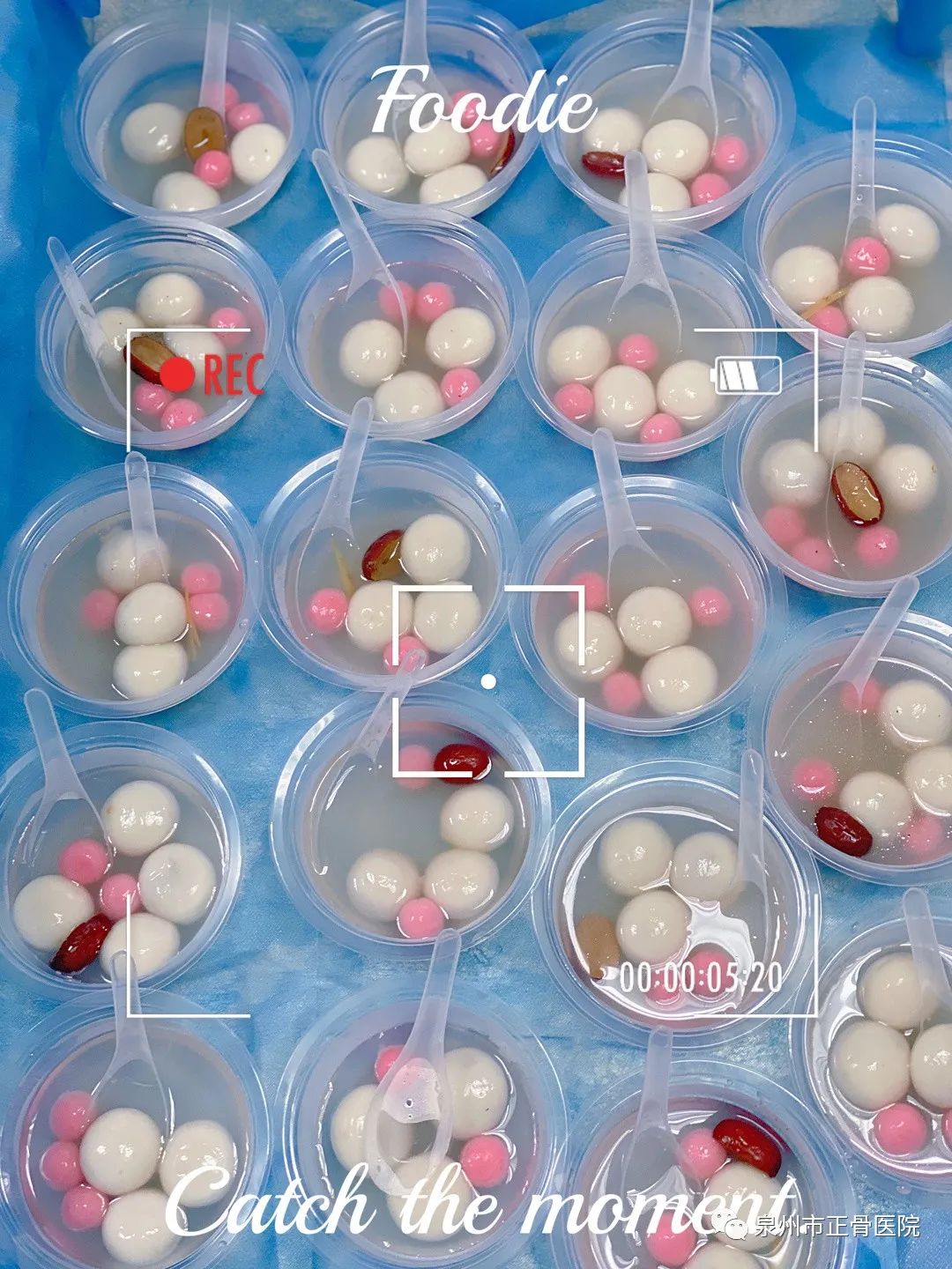 冬至大如年。在南方,冬至这天全家人会围坐在一起,人手一碗热气腾腾的汤圆,温暖而幸福。“汤圆”的 “圆”寓意着“团圆”和“圆满”。为了让住院患者和家属们都能在这个象征团圆的日子吃上热乎乎的汤圆,我院医护人员今天一早精心准备,为每位住院患者送上了养生汤圆和节日祝福,和他们一起度过了温馨的冬至日。