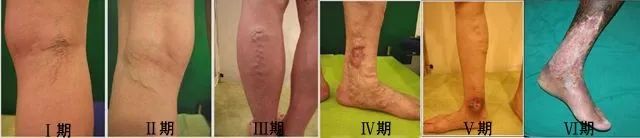 下肢静脉曲张的发病可分为0期到VI期,如果没有及时干预,就可能开始出现并发症,如局部皮肤瘙痒、湿疹、色素沉着等症状。长期静脉曲张的病人,腿部轻度损伤即会发生溃疡,且易损伤静脉壁,有的到后期溃疡无法愈合,常常流脓淌水,成了俗称的“老烂腿”。
