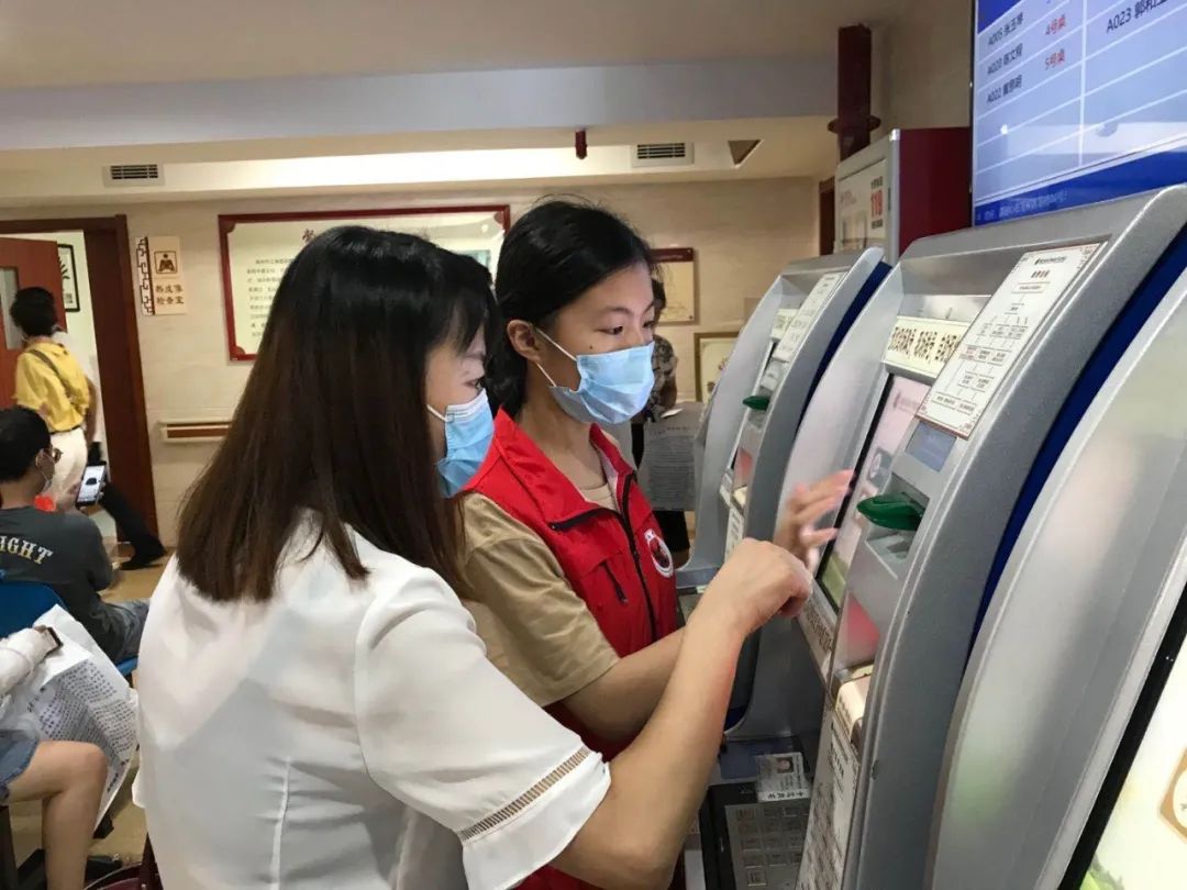志愿者引导患者使用自助机